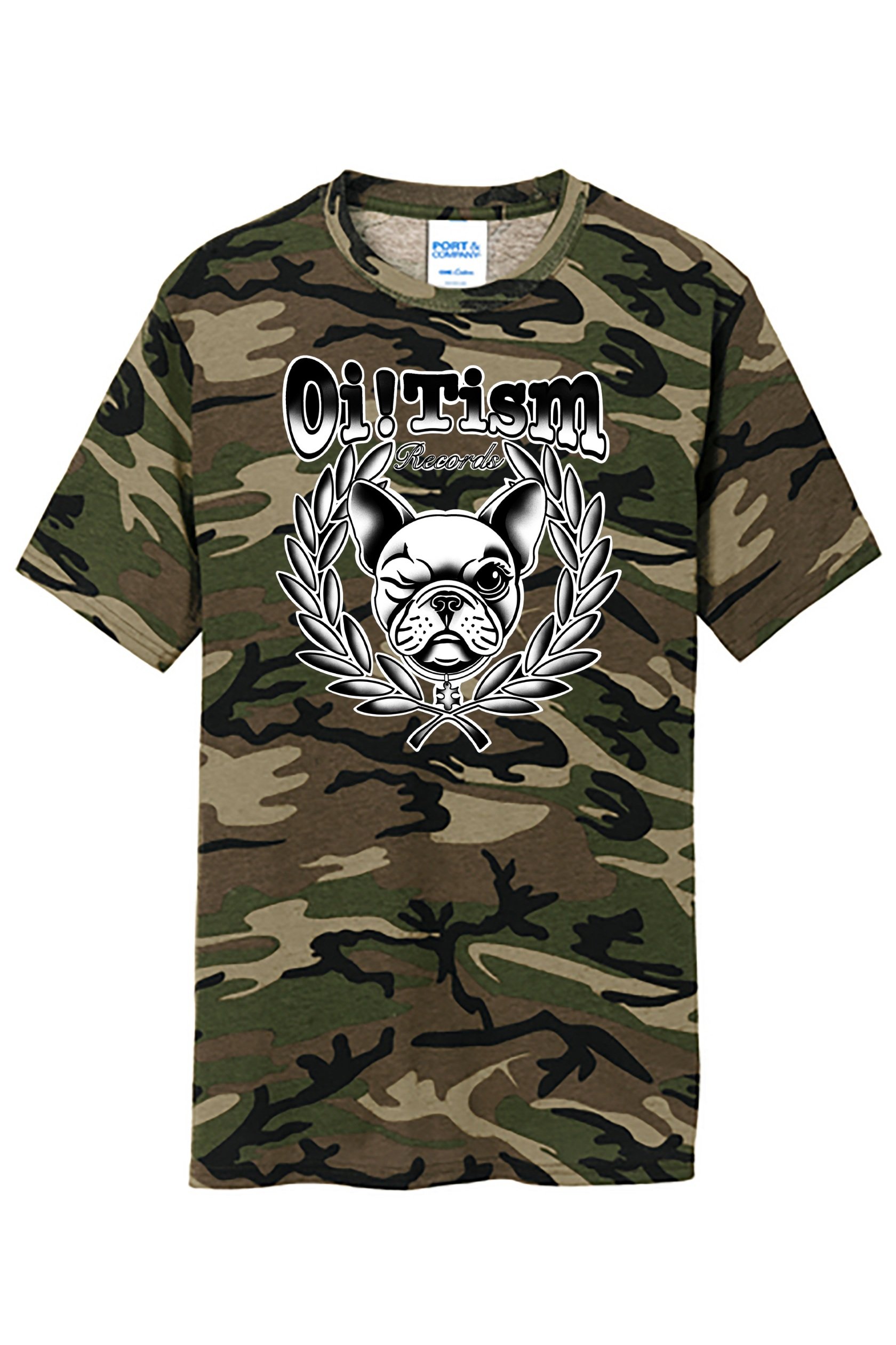 Camouflage Oi!Tism Records Logo T Shirt. Available to ship the third week of August! Short run. Limited sizes,